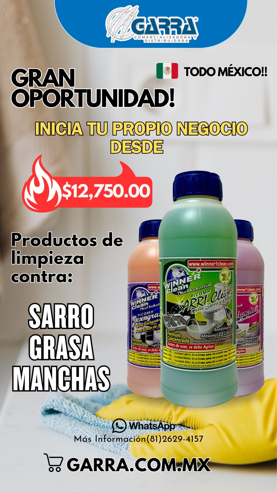 Dale un impulso a tu negocio ó Inicia uno!!Siendo parte de la Familia de Distribuidores Autorizados GARRA, los Productos de Limpieza más eficaces del mercado.